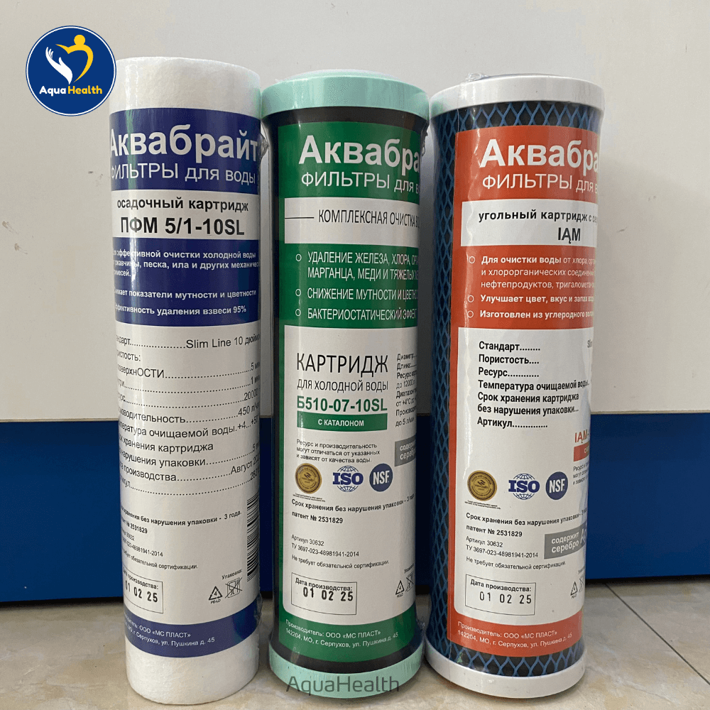 | Kích thước màng lọc | 10 inch Slim-Line (PP 5 µm + Carbon Block 5 µm + Carbon Block 0.8-1 µm) |