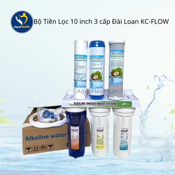 Bộ Tiền Lọc 10 inch 3 cấp Đài Loan KC-Flow dùng để làm bộ lọc tiền xử lý nước: máy lọc RO gia đình, máy lọc nước ion kiềm hoặc dùng làm bộ lọc sinh hoạt tại khu bếp như rửa rau, nấu ăn...