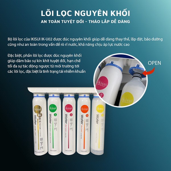 Lõi lọc Ikisui nguyên khối thay nhanh, tiện lợi bảo trì