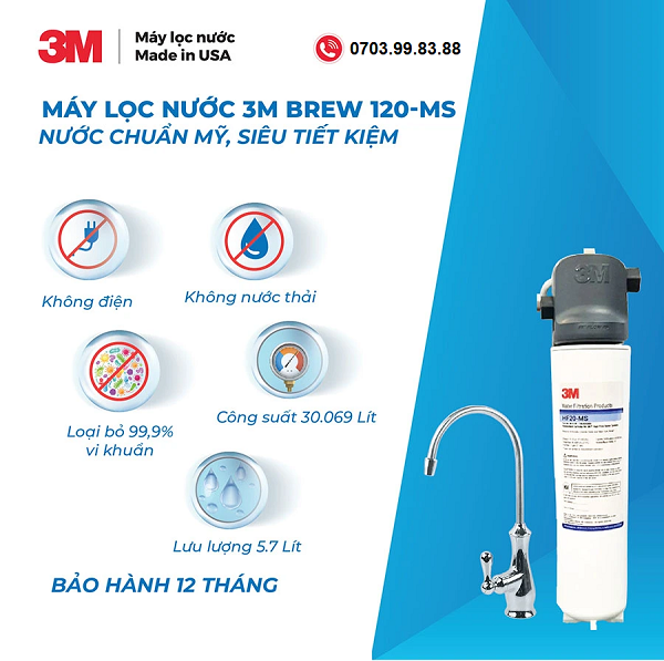 Máy lọc nước 3M BREW120-MS đi kèm với bộ lọc thô đến từ thương hiệu 3M nổi tiếng của Hoa Kỳ. Tập đoàn 3M được thành lập vào năm 1902, có trụ sở chính tại Hoa Kỳ và đã có hơn 100 năm kinh nghiệm trong nghiên cứu, phát triển và đổi mới công nghệ. 3M hoạt động tại hơn 65 quốc gia, bao gồm 29 công ty quốc tế với hoạt động sản xuất và 35 công ty có phòng thí nghiệm.