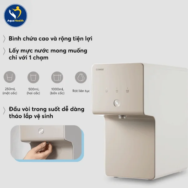 Coway không ngừng cải tiến để mang đến những trải nghiệm tiện nghi nhất cho người dùng. Các dòng máy lọc nước Coway chính hãng được trang bị nhiều tính năng thông minh như màn hình cảm ứng, đèn LED hiển thị trạng thái hoạt động, hay chế độ lấy nước liên tục chỉ với một lần chạm. Đặc biệt, nhiều model có hai vòi lấy nước riêng biệt cho nước thường và nước nóng/lạnh, giúp bạn dễ dàng sử dụng cho nhiều mục đích khác nhau như pha sữa, pha trà, cà phê hay giải khát tức thì. Khóa an toàn nước nóng cũng là một tính năng không thể thiếu, giúp bảo vệ an toàn tuyệt đối cho trẻ nhỏ, mang lại sự yên tâm cho các bậc phụ huynh khi quyết định đầu tư vào giá máy lọc nước Coway.