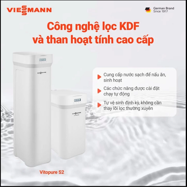 Viessmann Vitopure cung cấp các sản phẩm lọc nước đáp ứng mọi nhu cầu của các hộ gia đình, từ làm sạch đến nấu ăn, vệ sinh cá nhân đến nước uống. Vitopure được thiết kế để bảo vệ toàn diện cho nhu cầu sử dụng nước của gia đình: nước uống tinh khiết tốt cho sức khỏe, bảo vệ các thiết bị sử dụng nước để giảm chi phí bảo trì, nước sạch cho nhu cầu giặt giũ, bảo vệ gia đình khỏi nước tắm bị ô nhiễm, giúp tóc và da mềm mại.
