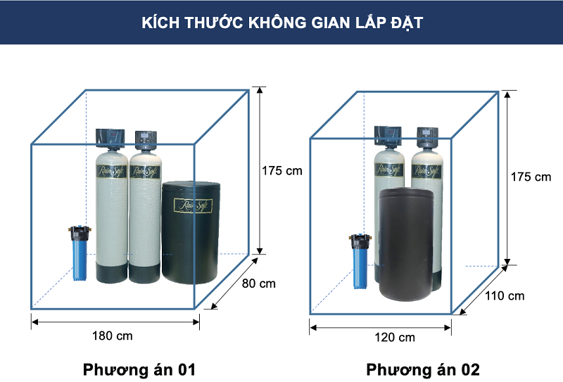 Không gian tủ chứa thiết bị lọc tổng Rainsoft RS03