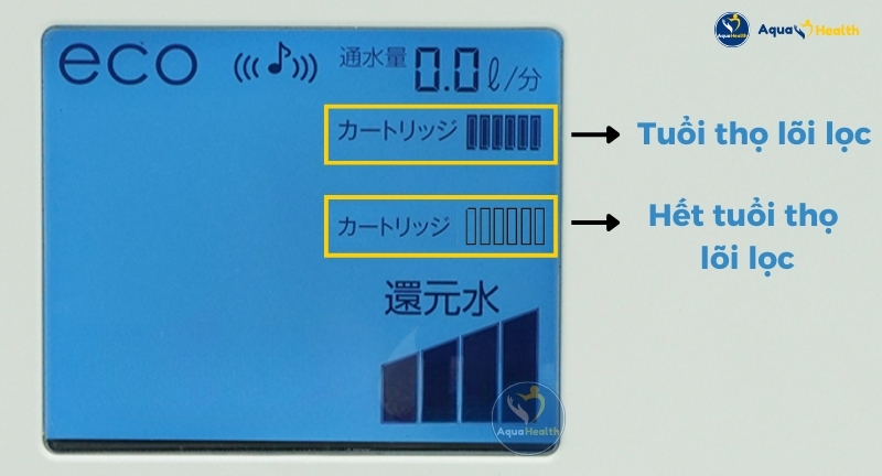 Vị trí đèn báo tuổi thọ lõi lọc trên màn hình thiết bị