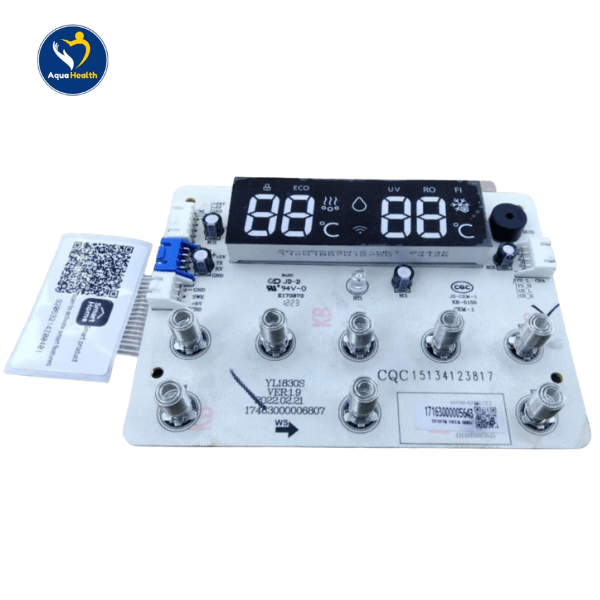 Bo hiển thị đóng vai trò là bảng điều khiển trung tâm, giúp hiển thị nhiệt độ và kiểm soát các chế độ hoạt động của máy lọc nước Toshiba. Linh kiện sử dụng nguồn điện đồng bộ theo hệ thống của máy, đảm bảo tín hiệu ổn định và chính xác.