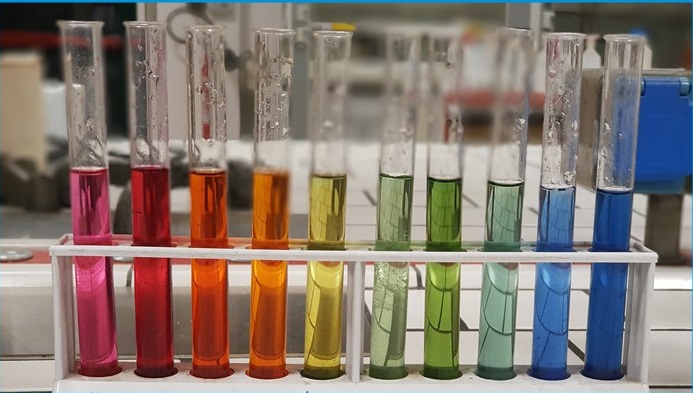 Bước 3: So sánh màu: So sánh màu sắc của dung dịch sau khi thêm thuốc thử với bảng màu chuẩn đi kèm. Bạn có thể đọc độ pH của dung dịch tương ứng thu được.
