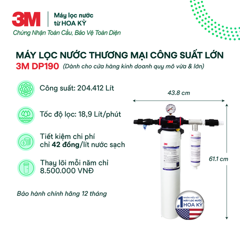 Tất cả thiết bị lọc nước thương mại 3M không sử dụng điện và không tạo nước thải. Với khả năng lọc nước lớn, các công ty và cửa hàng lớn thường lựa chọn máy lọc nước 3M. Đặc biệt, các thiết bị lọc nước thương mại 3M có thể cung cấp lượng nước lớn và phù hợp cho các mục đích thương mại như nhà hàng, quán cà phê, trà sữa...