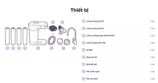 | Khả năng lọc nước | Loại bỏ vi khuẩn, chì, clo dư, mùi hôi, rỉ sét đỏ và độ đục, bù khoáng |