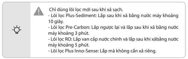 Lưu ý: Xả sạch lõi lọc mới trước khi gắn vào máy.