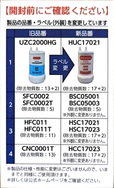 Lõi lọc Cleansui HUC17021 còn có thể dùng cho các dòng máy Cleansui sau:
