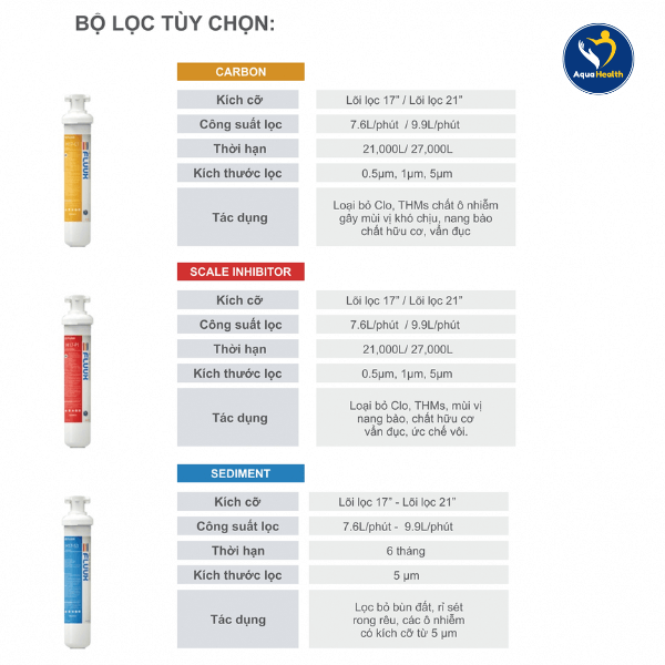 AquaHealth – Trung tâm phân phối các sản phẩm nhập khẩu chính hãng: máy lọc nước, máy điện giải, hệ thống lọc tổng, lõi lọc, thiết bị, linh kiện … AquaHealth là đối tác chiến lược với các tập đoàn hàng đầu thế giới, luôn chú trọng vào chất lượng cũng như độ uy tín của thương hiệu nhằm mang đến những sản phẩm tốt nhất đến người tiêu dùng Việt.