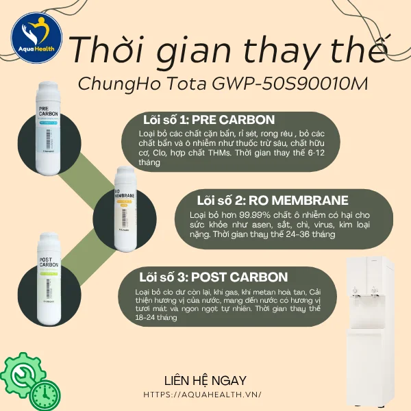 Thời gian thay thế lõi lọc nước ChungHo Tota