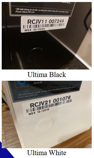 ***Lưu ý: Lõi Pureit Ultima màu đen model mới GKK1/GKK2 có số seri nằm trong khoảng từ RCJV11003051 đến RCJV11009999.
