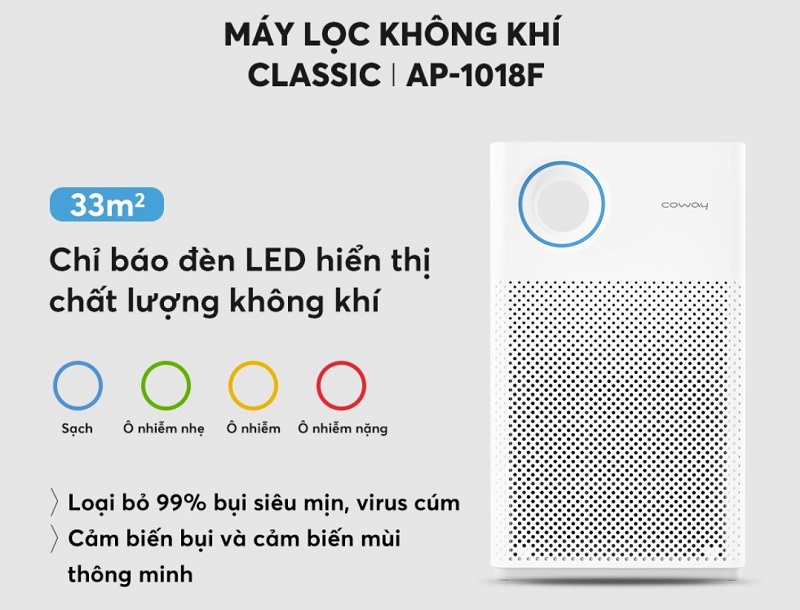 Máy Lọc Không Khí Coway CLASSIC (AP-1018F) không chỉ sở hữu nhiều tính năng hiện đại mà còn có mức giá hợp lý, hứa hẹn mang đến cho người dùng sự hài lòng cùng những trải nghiệm vượt xa mong đợi. Được trang bị hệ thống lọc tiên tiến với 4 màng lọc, chiếc máy nhỏ gọn này chắc chắn sẽ là một lựa chọn tuyệt vời cho những căn phòng có diện tích khoảng 33m2.