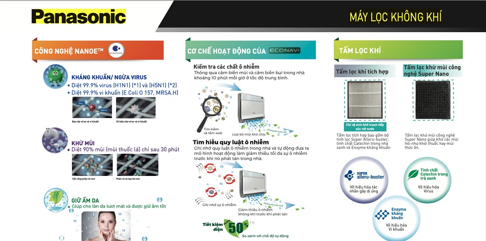 Tất cả các máy lọc không khí Panasonic không chỉ cung cấp giải pháp làm lạnh hay sưởi ấm như những dòng máy điều hòa thông thường, mà còn mang đến một giải pháp không khí toàn diện nhờ được trang bị công nghệ lọc khí nanoe™. Đây là một điểm khác biệt quan trọng của Panasonic, giúp bạn tận hưởng không gian sống trong lành và tươi mát.