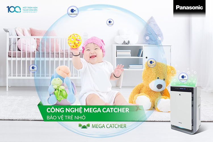 Máy lọc không khí và tạo ẩm Panasonic F-VXK70A được trang bị công nghệ Mega Catcher, giúp làm sạch hiệu quả không khí ở độ cao 30cm từ mặt đất, đảm bảo mang đến không khí an toàn cho trẻ nhỏ.