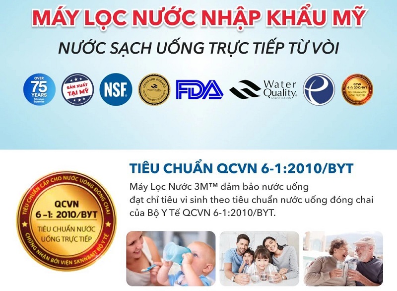 Chứng nhận đạt chuẩn nước uống trực tiếp sau lọc