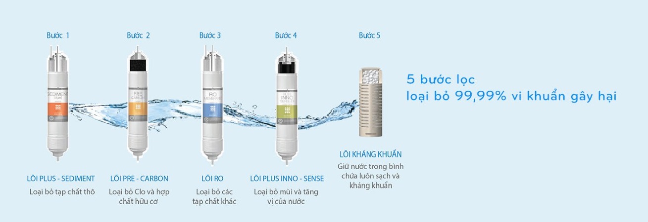 5 bước lọc giúp loại bỏ 99,99% vi khuẩn gây hại