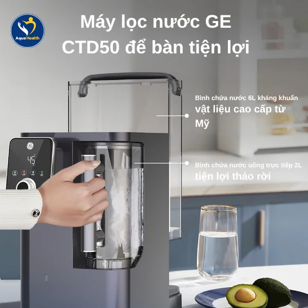 Tại AquaHealth, bạn không chỉ nhận được sản phẩm công nghệ cao cấp nhất mà còn được hưởng chế độ bảo hành chuẩn mực, dịch vụ tư vấn chuyên nghiệp và hỗ trợ kỹ thuật tận tâm. Đừng chần chừ, hãy liên hệ ngay với AquaHealth hôm nay để khám phá những ưu điểm vượt trội của máy lọc nước để bàn GE CTD50 và mang nguồn nước tinh khiết, giàu khoáng chất, an toàn tuyệt đối về cho tổ ấm của mình.