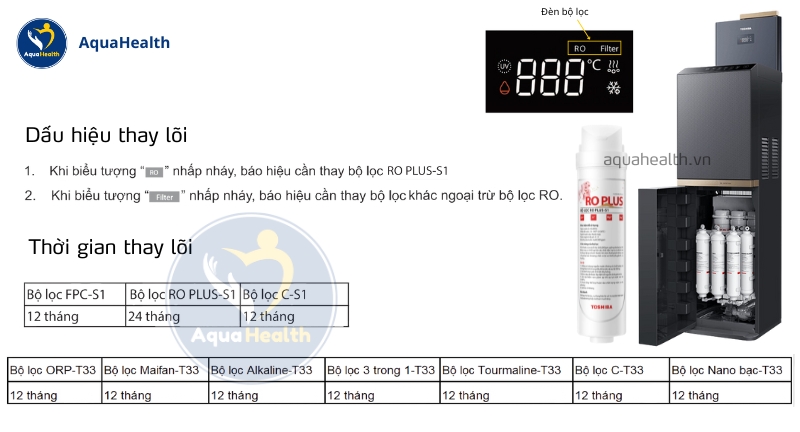 Dấu hiệu và thời gian thay lõi Toshiba Originpure TWP-W 2398SVN(M)