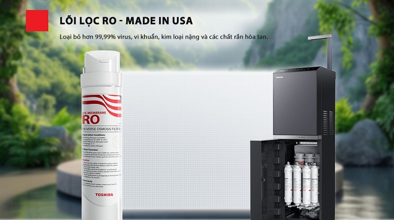 Toshiba Pure TWP-W2396SVN(M) có lõi RO 75 GPD Made in USA: loại bỏ hơn 99,99% virus, vi khuẩn, kim loại nặng và chất rắn hòa tan.