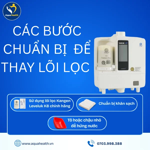 Trước khi bắt đầu, việc chuẩn bị đầy đủ các dụng cụ cần thiết là rất quan trọng để đảm bảo quá trình thay lõi máy điện giải Kangen Leveluk K8 diễn ra suôn sẻ. Bạn sẽ cần một chiếc lõi lọc mới, chính hãng để đảm bảo hiệu quả lọc và không làm hỏng máy. Ngoài ra, hãy chuẩn bị một chiếc khăn sạch để lau khô các bộ phận và một chiếc tô hoặc chậu nhỏ để hứng nước còn sót lại. Việc chuẩn bị chu đáo sẽ giúp bạn tiết kiệm thời gian và tránh những sai sót không đáng có. Hãy đảm bảo rằng bạn đã mua đúng loại lõi lọc Kangen Leveluk K8 chính hãng để đảm bảo chất lượng nước tốt nhất.