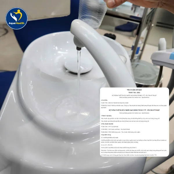 CFU/mL (Colony-Forming Units per milliliter), một tiêu chuẩn rất khó đạt nếu không có hệ thống khử trùng tích hợp. Đặc biệt, nước dùng cho nồi hấp tiệt trùng phải tuân thủ tiêu chuẩn nước loại II hoặc loại III (theo ISO 3696 hoặc CLSI), yêu cầu độ dẫn điện rất thấp và không có tạp chất rắn để bảo vệ thiết bị. Thiết bị lọc nước nha khoa chuẩn y tế phải cung cấp nước có thể được kiểm chứng bằng các thiết bị đo chuyên dụng, đảm bảo tuân thủ nghiêm ngặt mọi quy tắc an toàn.Các quy định bắt buộc về nước được sử dụng trong khám bệnh