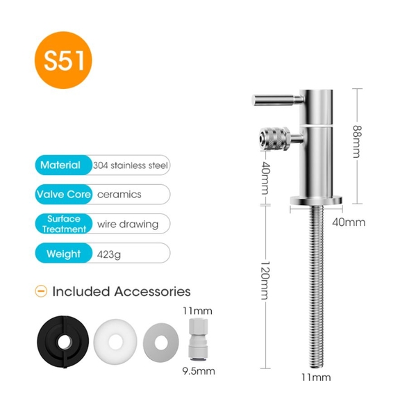 Vòi inox cấp nước chuyên dùng cho máy lọc nước điện giải ion kiềm có vòi nước ra ở trên đầu. Các dòng máy phù hợp sản phẩm: